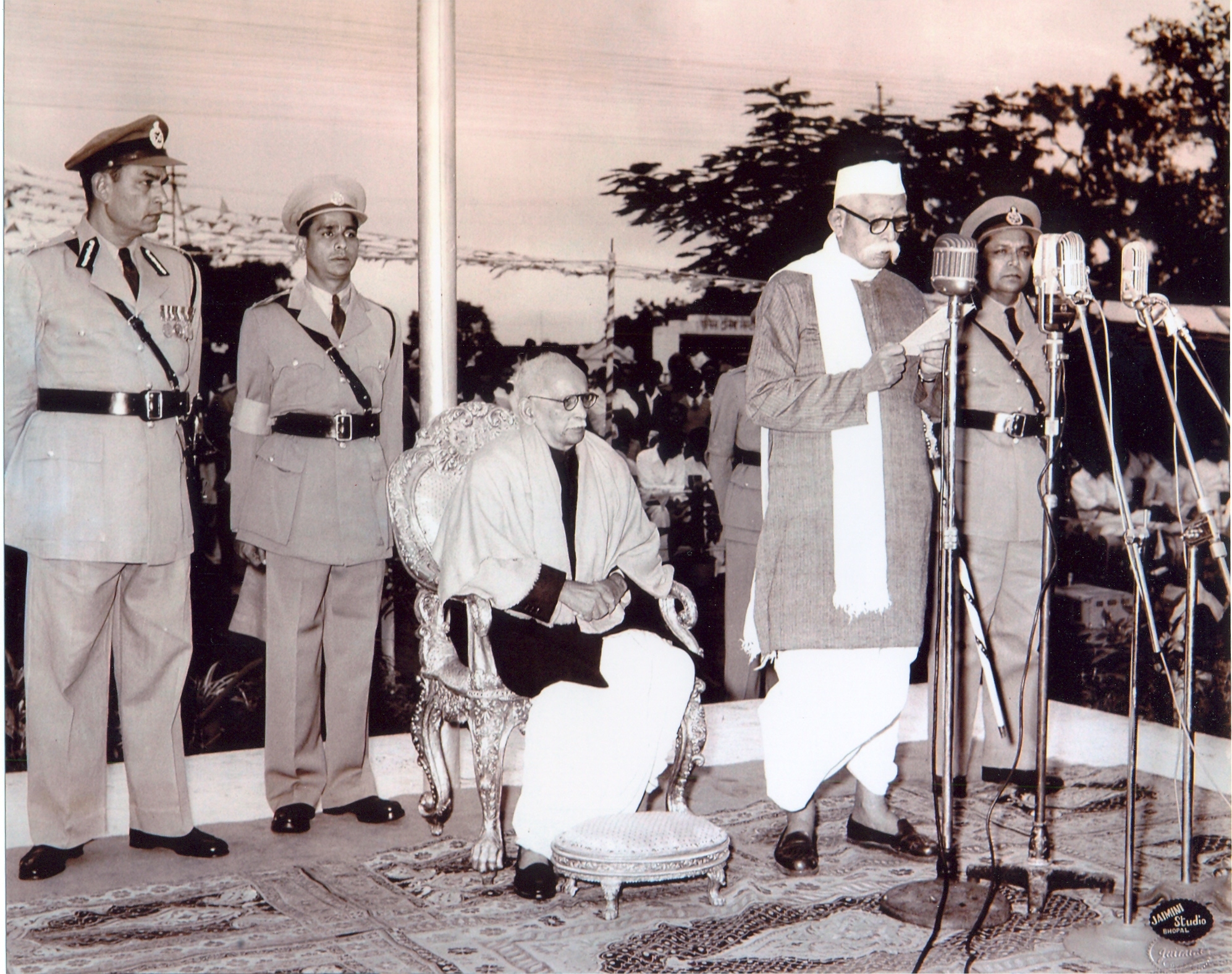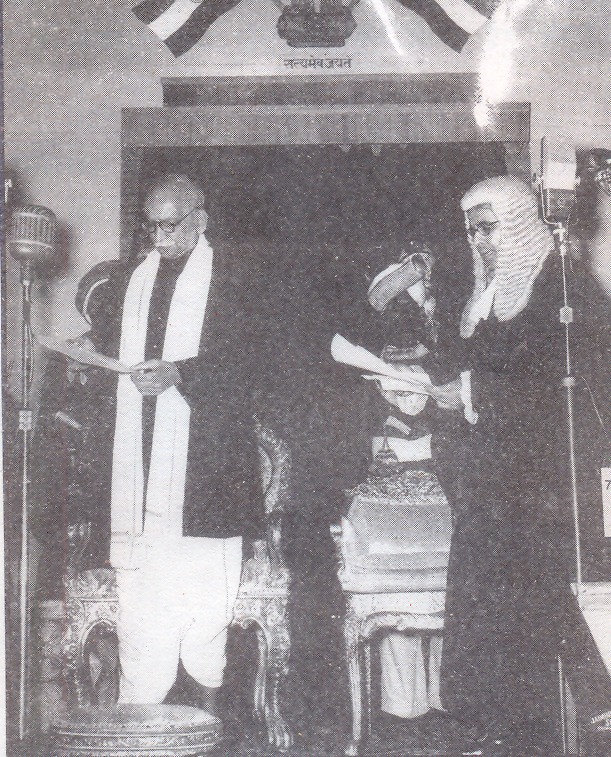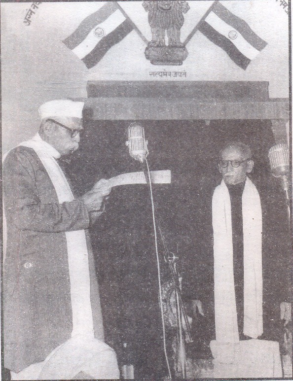 मुख्यमंत्री पद की शपथ दिलाते हुए महामहिम राज्यपाल श्री पट्टाभि सीतारमैया. |