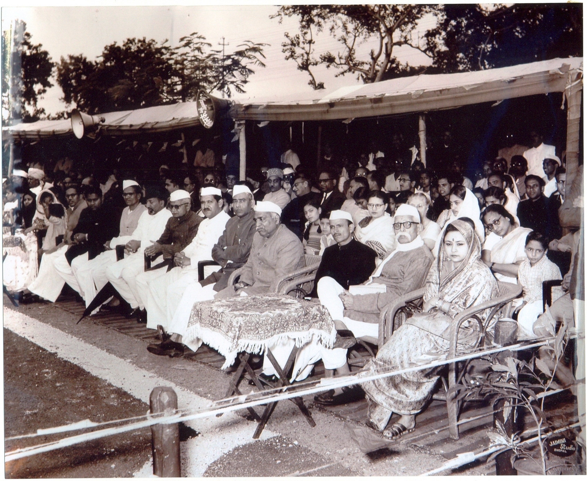 राज्यपाल डॉ. पट्टाभिसीतारमैया को मिन्टो हाल (पुराना विधान सभा भवन) में 31-10-1956 की मध्य रात्रि में राज्यपाल पद की शपथ दिलाते हुए. मध्यप्रदेश के माटीपुत्र श्री हिदायत उल्लाह बाद में सुप्रीम कोर्ट के मुख्य न्यायाधीश एवं भारत के उप राष्ट्रपति भी रहे. |