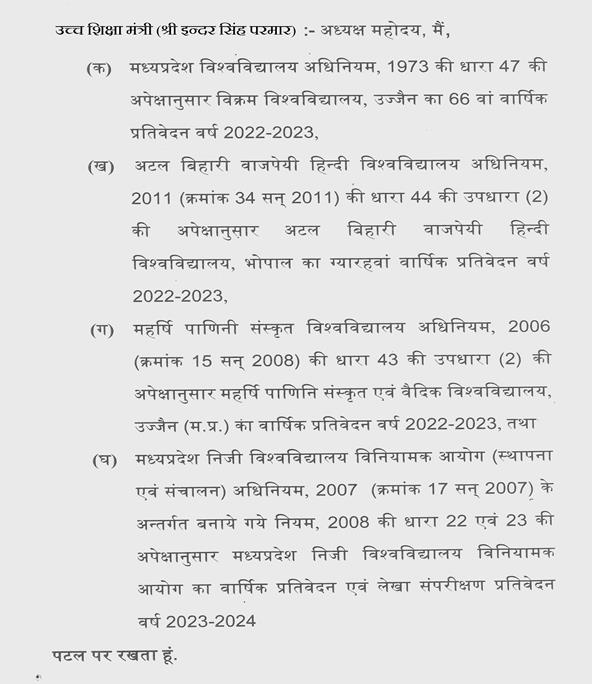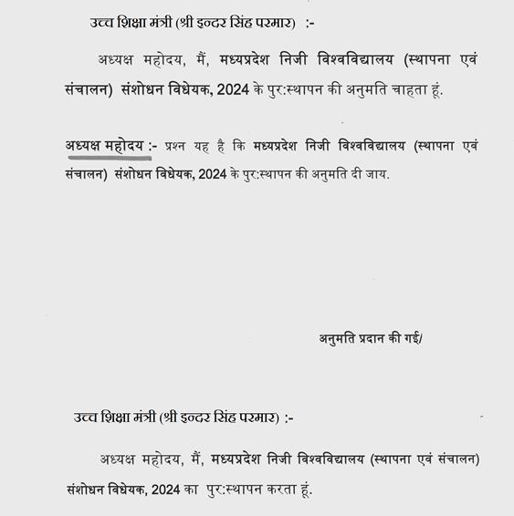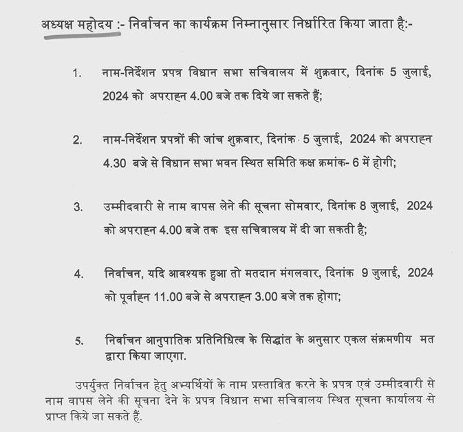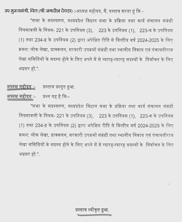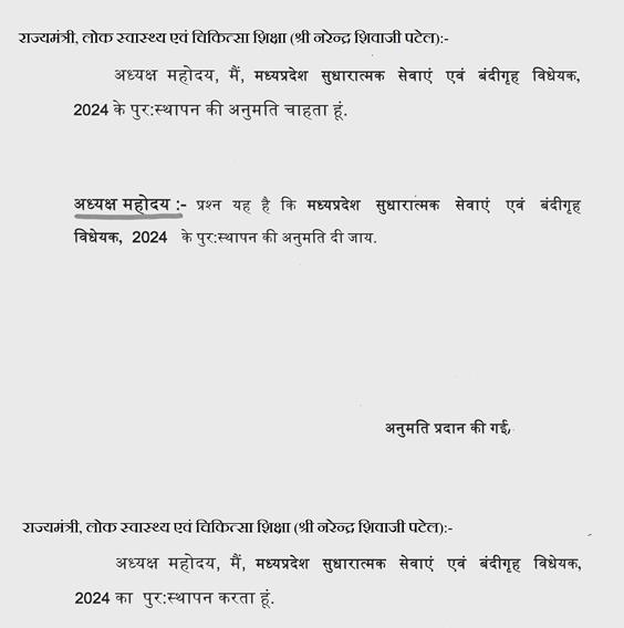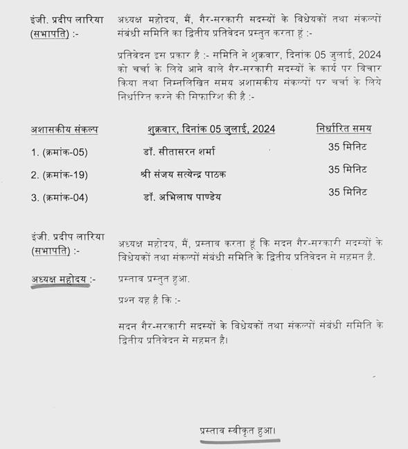 विधानसभा की कार्यवाही शुक्रवार दिनांक 5 जुलाई 2024 को प्रात: 11:00 बजे तक के लिए स्थगित.