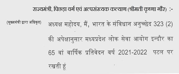 अध्यक्ष महोदय, हमने यह अभी कुछ प्रमुख क्षेत्रों में तुलनात्मक विवरण राशि का प्रावधान किया है. सामाजिक क्षेत्र में स्वास्थ्य एवं महिला बाल विकास में हमने 56 प्रतिशत् की वृद्धि की. महिलाओं के बारे में महिला सशक्तिकरण के बारे में जितनी चिंता नरेन्द्र मोदी जी ने, जितनी चिंता मध्यप्रदेश की सरकार ने किया है, मुझे नहीं लगता है कि कोई करेगा. खाली एक उसकी कमी निकालना कि 3 हजार नहीं दिये अरे, 3 हजार नहीं जितने कहा उतने देंगे. पूरे देंगे. हम कह रहे हैं. हम कहीं जा नहीं रहे हैं. न आप जा रहे हैं और न कहीं हम जा रहे हैं.