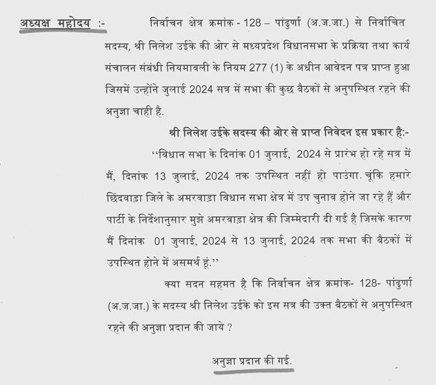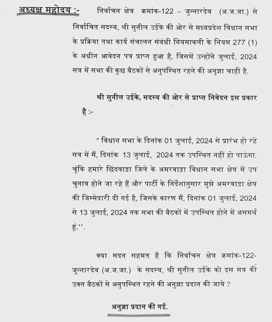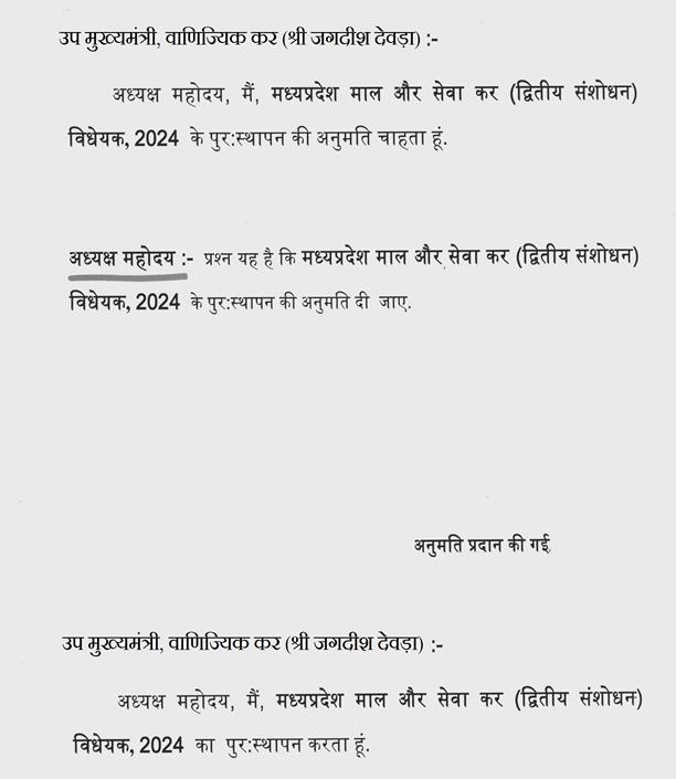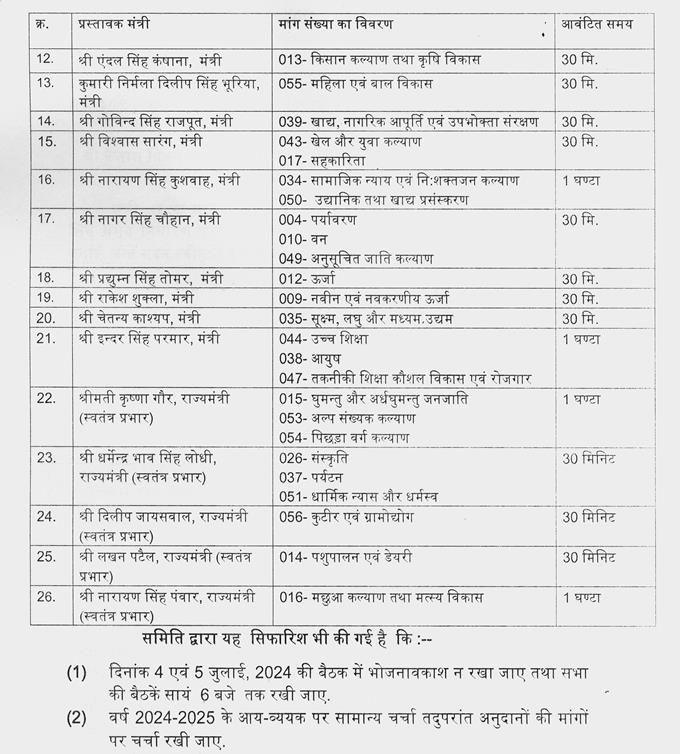 अपरान्ह 10:00 बजे विधानसभा की कार्यवाही शुक्रवार, दिनांक 5 जुलाई 2024 (14 आषाढ़, शक संवत् 1946) के पूर्वाह्न 11:00 बजे तक के लिए स्थगित की गई.