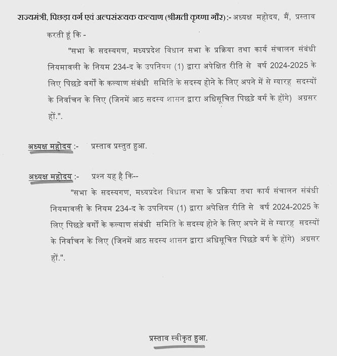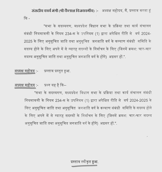संसदीय कार्य मंत्री(श्री कैलाश विजयवर्गीय) - आपने एक गंभीर बात कही है कि सदन के सदस्य ने बनाई है.