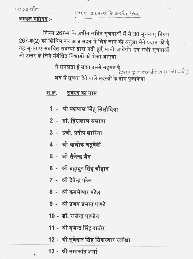 श्री प्रियव्रत सिंह-- माननीय अध्यक्ष जी, मैं दूसरा प्वाइंट रेस करना चाह रहा था, आज नियम 52 पर चर्चा होनी थी और अभी जब समय बढ़ाया गया तो सिर्फ अशासकीय संकल्पों का ही यहां पर जिक्र किया गया है.