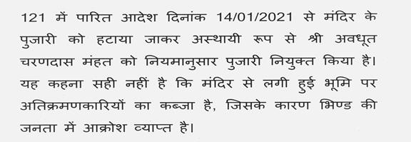 "यह सदन केन्द्र शासन से अनुरोध करता है कि पश्चिम मध्य रेल के खन्ना बंजारी रेल्वे स्टेशन का नाम परिवर्तित कर विजयनाथधाम किया जाए. "