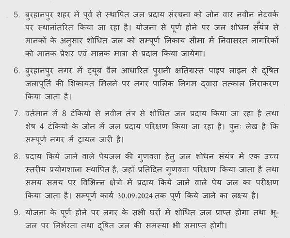 9. ( *क्र. 1321 ) श्री रमेश प्रसाद खटीक : क्या लोक स्वास्थ्य यांत्रिकी मंत्री महोदया यह बताने की कृपा करेंगी कि (क) क्या शिवपुरी जिले के करैरा विधान सभा क्षेत्र 23 के अंतर्गत जल जीवन मिशन के तहत करैरा-नरवर की तहसीलों से स्कूल, आंगनवाड़ी में पेयजल व्यवस्था हेतु विभाग द्वारा टेण्डर स्वीकृत होकर उक्त फर्म के द्वारा किये गये कार्यों की जानकारी प्रश्नकर्ता के पत्र क्र. MLA/211, 20.05.2024 को किये गये कार्यों की संपूर्ण जानकारी कार्यपालन यंत्री, लोक स्वास्थ्य यांत्रिकी विभाग, संभाग शिवपुरी से 7 दिवस में मांगी थी, परन्तु आज दिनांक तक उक्त जानकारी नहीं दी गई? क्यों नहीं दी गई? (ख) आंगनवाड़ी व स्कूलों में स्वीकृत टेंडर की कुल लागत व किस फर्म का टेण्डर स्वीकृत हुआ था एवं फर्म द्वारा कुल कितने स्कूलों एवं आंगनवाड़ियों में क्या-क्या कार्य किये गये थे? उक्त कार्यों का नाम व स्थान सहित जानकारी उपलब्ध करायें। (ग) टेण्डर अनुसार इलेक्ट्रिक मोटर पम्प, जी.आई पाइप, एच.डी.पी. पाइप की टी.पी.आई. रिपोर्ट व टेण्डर अनुसार पाइप-मोटर डाले गये? उसकी लम्बाई तथा कितने नवीन बोर उत्खनन किये गये? कहां-कहां संपूर्ण जानकारी उपलब्ध करायें।