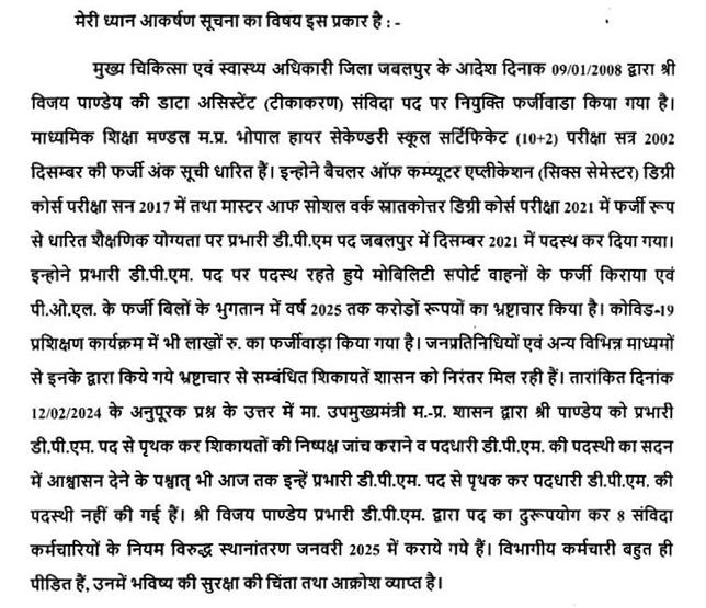 श्रीमती अनुभा मुंजारे- सभापति महोदय, मैं मंत्री जी से जानना चाहती हूं कि विभाग द्वारा संचालनालय भोपाल के पत्र क्रमांक-11/5/96, दिनांक 7.7.2012 जारी किया गया था, जिसके आधार पर सहायक ग्रेड-3 का सहायक ग्रेड-2 के पद पर पदोन्नति नहीं किये जाने की असत्य जानकारी विभाग के द्वारा दी गयी, जिबकी सहायक ग्रेड-2, वरिष्ठता सूची के सरल क्रमांक- 125, 126 और 127 में दिनांक 21/5/2025 को..