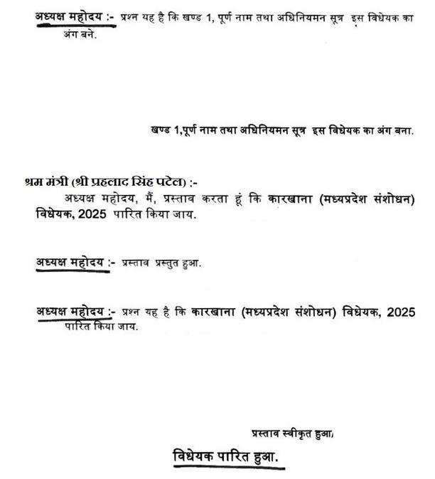 प्रश्न यह है कि मध्यप्रदेश दुकान तथा स्थापना(संशोधन)विधेयक,2025 पारित किया जाय.