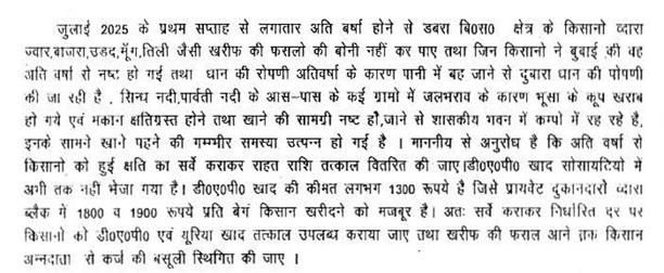 4. किसानों को अतिवर्षा से राहत एवं रासायनिक खाद उपलब्ध कराने एवं वसूली स्थगित करने बाबत्.