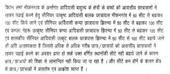 5. विधानसभा भीकनगांव अंतर्गत आदिवासी बालक/बालिका छात्रावासों में सीट वृद्धि किये जाने बाबत्.