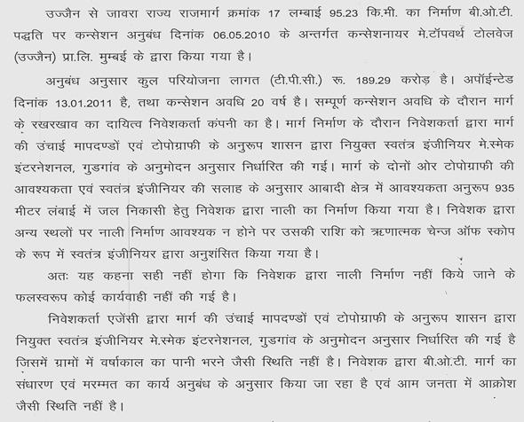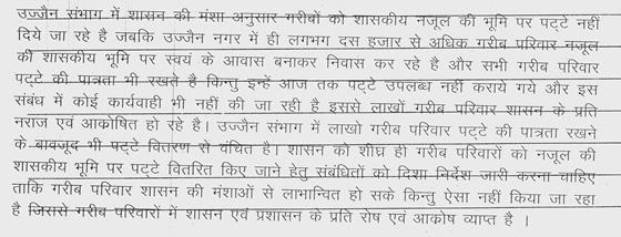 श्री उमाशंकर गुप्ता-- माननीय अध्यक्ष महोदय, जो जवाब प्राप्त हुआ है और मैंने दिया है इसमें इस पत्र के बारे में मना नहीं किया कि कलेक्टर ने पत्र नहीं लिखा है, लेकिन ऐसी कोई शिकायत स्पेसिफिक कार्यालय को प्राप्त नहीं हुई है या जवाब मिला है, लेकिन मैं माननीय नेता प्रतिपक्ष जी की इस बात से सहमत हूं कि सारे प्रश्नों को मेरे भी अध्ययन करने के बाद लग रहा है कि कुछ न कुछ गड़बड़ जरूर है और इसलिये नोटिस दिये हैं, फार्मेलिटी हुई है लेकिन कार्यवाही नहीं हुई है, मैं इसको स्वीकार करता हूं. और इसलिये संभागायुक्त की अध्यक्षता में पूरे जिले के ऐसे मामलों की हम जांच करायेंगे.
