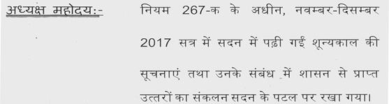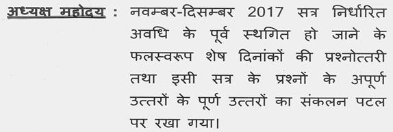 अपराह्न 5.38 बजे विधान सभा की कार्यवाही गुरुवार, दिनांक 8 मार्च, 2018 (17 फाल्गुन, शक संवत् 1939) के पूर्वाह्न 11.00 बजे तक के लिए स्थगित की गई.