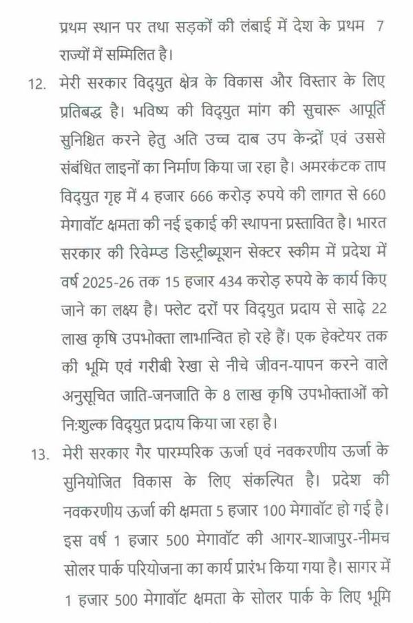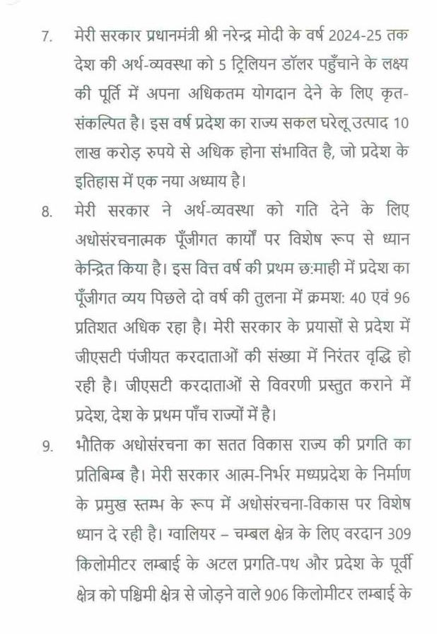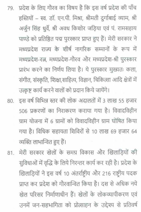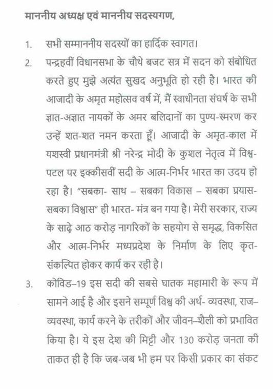 अध्यक्ष महोदय -- माननीय राज्यपाल महोदय द्वारा अपने अभिभाषण के अधिकांश पैराग्राफ पढ़े गए हैं. शेष समस्त पैराग्राफ पढ़े हुए माने जाएंगे.