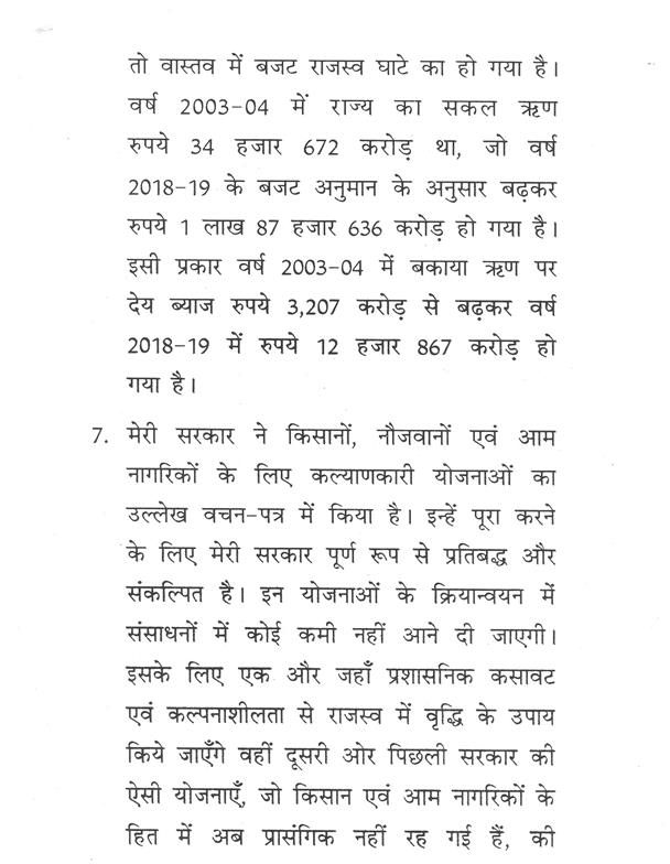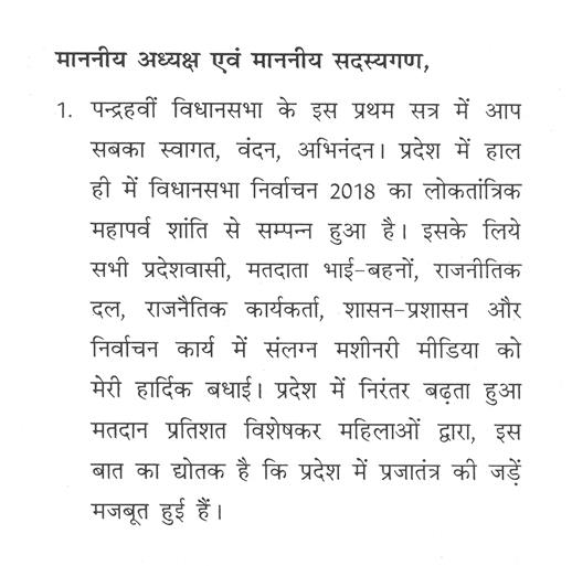 "राज्यपाल ने जो अभिभाषण दिया, उसके लिए मध्यप्रदेश की विधान सभा के इस सत्र में समवेत सदस्यगण अत्यंत कृतज्ञ हैं."