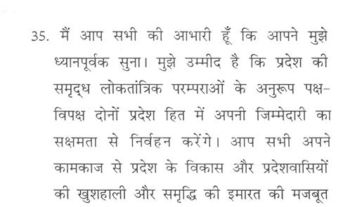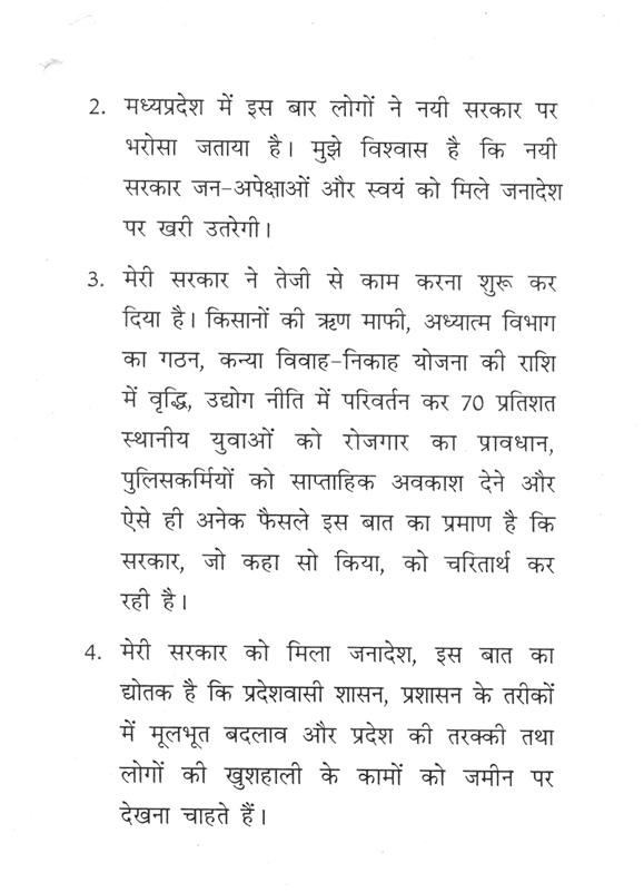 "राज्यपाल ने जो अभिभाषण दिया, उसके लिए मध्यप्रदेश की विधान सभा के इस सत्र के समवेत सदस्यगण अत्यंत कृतज्ञ हैं."