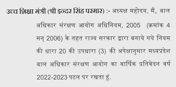 अपराह्न 5.35 बजे विधानसभा की कार्यवाही सोमवार, दिनांक 12 फरवरी, 2024 ( 23 माघ, शक संवत् 1945 ) के पूर्वाह्न 11.00 बजे तक के लिये स्थगित की गई.