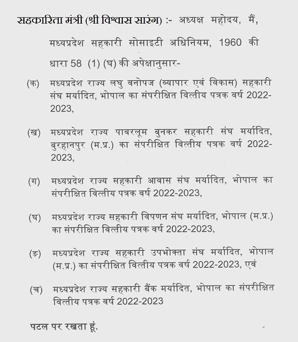 सहकारिता मंत्री(श्री विश्वास सारंग) - अध्यक्ष महोदय,मेरा व्यवस्था का प्रश्न है. यह नेता प्रतिपक्ष की कुर्सी से बो रहे हैं इनको समझा तो दीजिये. यह नेता प्रतिपक्ष की कुर्सी से नहीं बोल सकते. अपनी कुर्सी से बोलिये. इनका प्रबोधन तो करवा दीजिये.