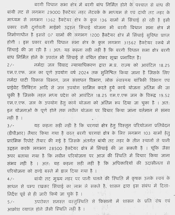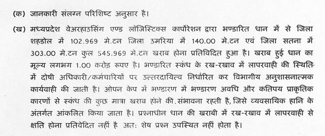 श्री शशांक श्रीकृष्ण भार्गव - कफन आज भी नहीं मिल रहा है. मेरे पास 40 केस हैं. श्री दिलीप सिंह परिहार - आप अपने गिरेबां में झांककर देखें. 12वीं में जो 75 प्रतिशत मार्क्स लेकर बेटियां आती थीं उनको लैपटाप देना भी आपने बंद कर दिये थे. ऐसे ही पंडित दीनदयाल जी के नाम से आज हम 5 रुपये में थाली जिले स्तर पर, तहसील स्तर पर दे रहे हैं. कोई भी व्यक्ति रैन बसेरों में सो सकता है भोजन कर सकता है और लगातार भावांतर जैसी योजना भी यशस्वी मुख्यमंत्री मान्यवर श्री शिवराज सिंह चौहान जी ने चालू की है.