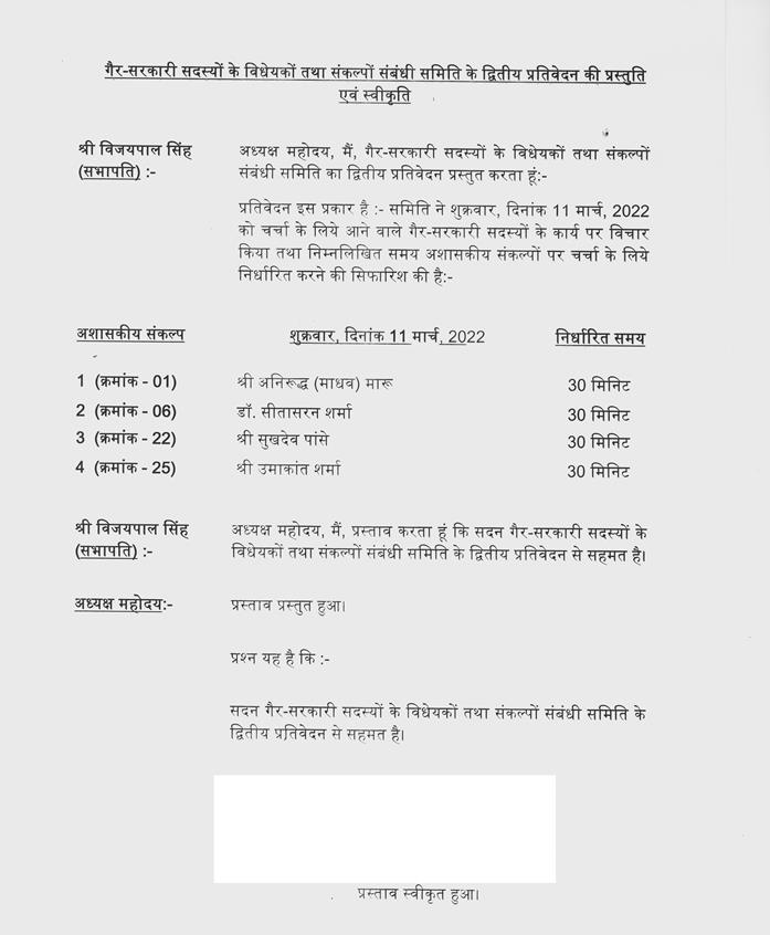 राज्यपाल के अभिभाषण पर डॉ. सीतासरन शर्मा, सदस्य द्वारा दिनांक 7 मार्च, 2022 को प्रस्तुत कृतज्ञता प्रस्ताव पर चर्चा (क्रमशः)
