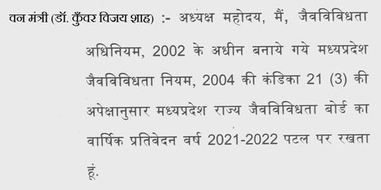 (1) मध्यप्रदेश राज्य जैव विविधता बोर्ड का वार्षिक प्रतिवेदन वर्ष 2021-2022