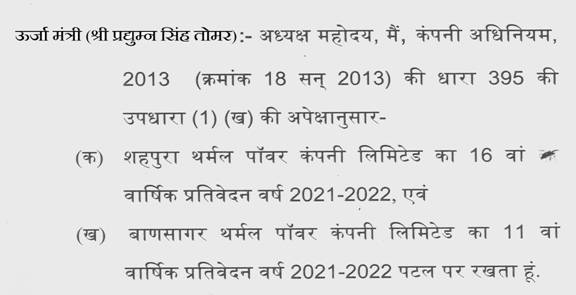 (ख) बाणसागर थर्मल पॉवर कंपनी लिमिटेड का 11 वां वार्षिक प्रतिवेदन वर्ष 2021-2022