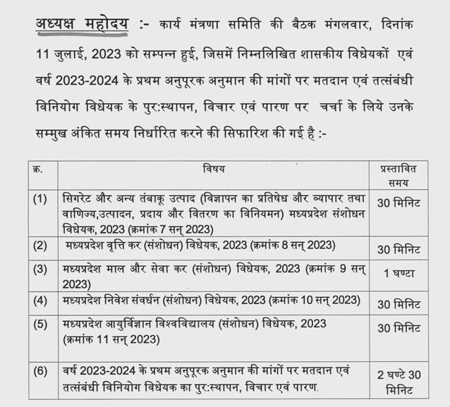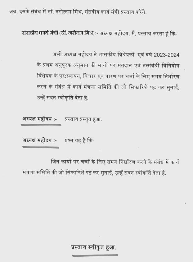 अपराह्न 12.35 बजे विधान सभा की कार्यवाही बुधवार, दिनांक 12 जुलाई, 2023 (आषाढ़ 21, 1945) को प्रातः 11.00 बजे तक के लिये स्थगित की गई.
