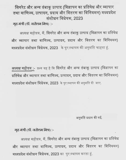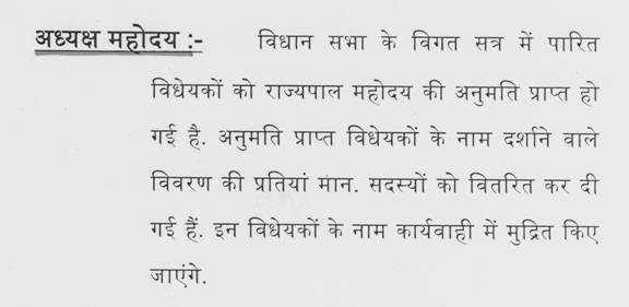12.29 बजे राज्यपाल की अनुमति प्राप्त विधेयकों की सूचना