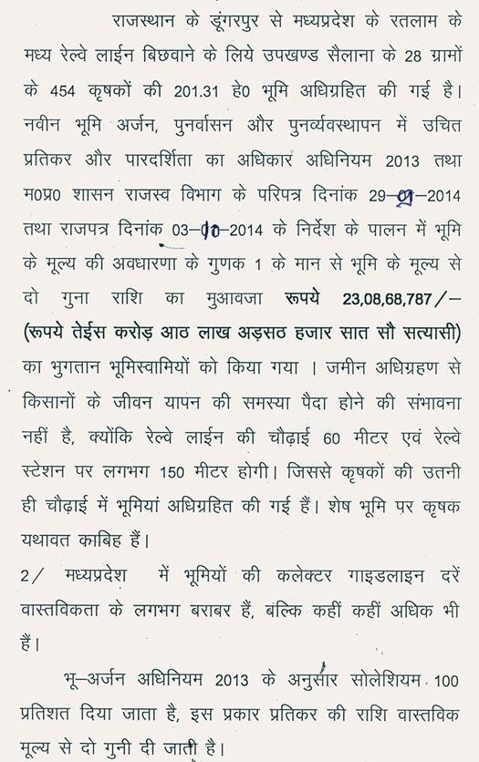 राज्यमंत्री, पर्यटन ( श्री सुरेन्द्र पटवा ) – आदरणीय अध्यक्ष महोदय जो प्रस्ताव आया है कि रेल्वे स्टेशन भदौरा से जिला मुख्यालय सीधी तक रेल्वे लाइन बनाई जाय जो प्रस्ताव आया है उ सके लिए परिवहन विभाग माननीय विधायक जी की भावना से सहमत है. इसको हम भारत शासन को भेजने के लिए अग्रेषित किया जायेगा.