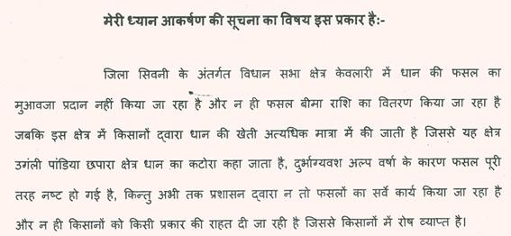 श्री हरदीप सिंह डंग—अध्यक्ष महोदय, मैंने जो प्रश्न के माध्यम से जानकारी चाही थी वह जानकारी जानबूझकर छिपायी गयी है यह जो मीटिंगों की जानकारी, आपके पास जो एक फोल्डर है उसमें सीतामऊ सामुदायिक स्वास्थ्य केन्द्र की जो मीटिंग 22.12.14, 23.5.15, 10.9.15, यह तीन मीटिंग हुई लेकिन इसकी जानकारी नहीं आ गयी है और जो मेरी शंका थी वह सत्य निकली कि वे जानबूझकर के जानकारी इसलिए नहीं देना चाहते क्योंकि उस मीटिंग में मैं खुद गया था और कहीं न कहीं गलत जानकारी मेरे सामने पेश की थी और मैं वह जानकारी यहां विधानसभा में मंगाना चाहता था, वह मीटिंग की जानकारी यहां पर नहीं दी गयी है. सुवासरा में 22.8.15 को एक मीटिंग रखी गयी थी उसकी भी जानकारी नहीं दी गयी और शामगढ़ में 20.2.14, 16.9.14, 17.7.15 को जो मीटिंग जनहितैषी कार्यों के लिए और रोगी कल्याण के लिए रखी गयी थी उसमें पहली मीटिंग 20.2.14 में 14 प्रस्ताव किये गये लेकिन 12 में कुछ भी एक्शन नहीं लिया गया. 16.9.14 को 10 प्रस्ताव किये गये जिसमें से 8 अभी भी पेंडिंग पड़े हैं, कोई उस पर कार्यवाही नहीं की गयी. 17.7.15 को 26 प्रस्ताव किये और 23 पर कोई निर्णय नहीं लिया गया. मेरा निवेदन है कि रोगी कल्याण समिति के माध्यम से शामगढ़ में करोड़ों रुपये की दुकानें नीलाम करके हम वहां पर सरकारी बिल्डिंग में रुपये लगा रहे हैं, वहां पर डाक्टर प्रायवेट रख रखे हैं. मेरा कहना है कि जनहितैषी जो प्रस्ताव किये गये हैं उस पर अभी तक कोई कार्यवाही क्यों नहीं की गयी और जो मीटिंगे रखी गयी थी उसकी जानकारी क्यों नहीं दी गयी? क्योंकि अभी हमने 90 लाख की दुकानें नीलाम कीं वह रोगी कल्याण समिति के पास है, करोड़ों रुपया हमारे पास है. हम रुपये खर्च कर रहे हैं तो मुझे इसका जवाब दें कि जानकारी क्यों छिपायी गयी और जो प्रस्ताव किये उन पर कार्यवाही अभी तक क्यों नहीं की गयी?