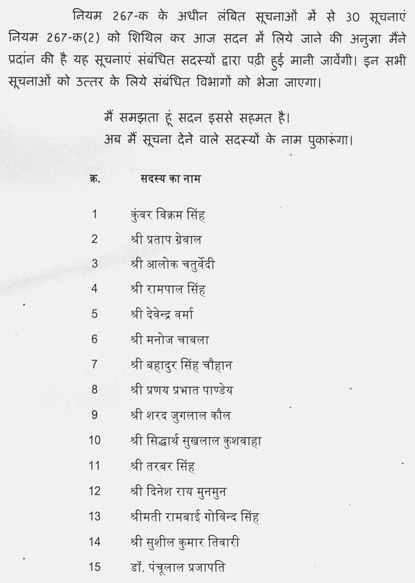 अध्यक्ष महोदय- यशपाल जी, आपका अशासकीय संकल्प आ रहा है इसमें मत उलझिये. सभी सदस्य एवं माननीय मंत्रीगण कृपया अपने स्थान पर जायें. कृपया सदन का डेकोरम बनाए रखें. (माननीय सदस्यों एवं मंत्रीगण द्वारा सदन की अधिकारी दीर्घा में अधिकारियों से चर्चा करने पर)