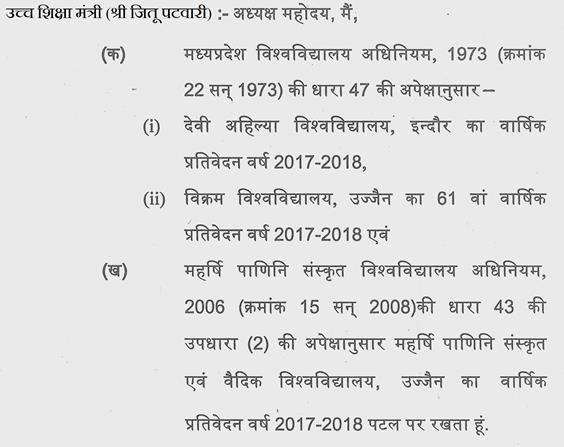 नेता प्रतिपक्ष (श्री गोपाल भार्गव)--अध्यक्ष महोदय, एक तरफ वोटें ठग ली, उसके बाद कह रहे हैं कि समय सीमा बताना संभव नहीं है. आपकी भी समय सीमा नहीं है कि आपकी सरकार कब तक रहेगी ?
