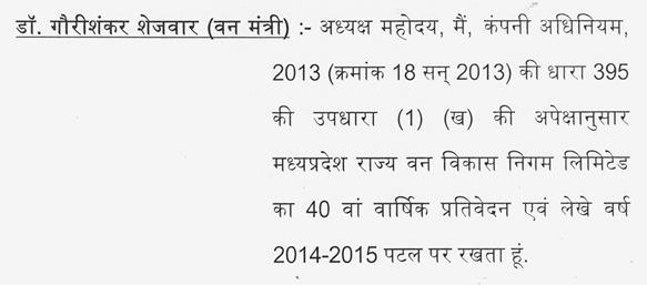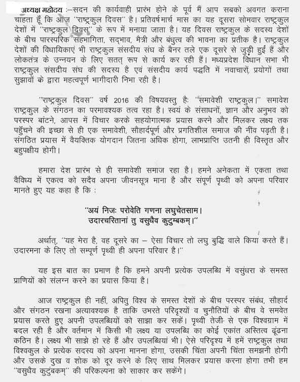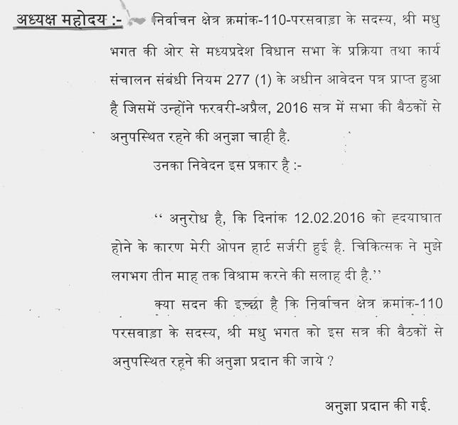 दिनांक : 14 मार्च, 2016 मध्यप्रदेश विधान सभा