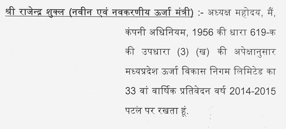 श्री राजेन्द्र शुक्ल -- माननीय अध्यक्ष महोदय, नवीन और नवकरणीय ऊर्जा के बारे में कहना चाहूंगा.