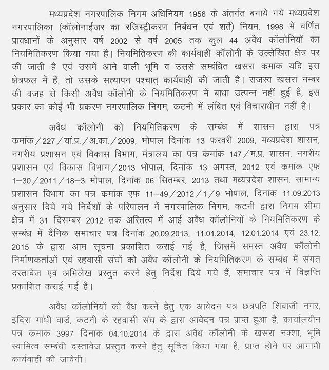 श्रीमती ममता मीना--माननीय अध्यक्ष महोदय, जो जवाब आया है वह पूरी तरह से गलत है. मात्र तीन एकड़ में साक्षी हास्पिटल, साक्षी इंजीनियरिंग कॉलेज, छात्रावास कुल मिलाकर यह केवल तीन एकड़ में बना है. मैं मंत्रीजी से चाहती हूँ कि एक उच्च स्तरीय, प्रदेश स्तरीय जांच कमेटी बनाई जाए उस जांच कमेटी के माध्यम से जांच कराई जाए मैं रोज देखने वाली हूं यह जो बताया गया कि 44 हेक्टयर में यह कैम्पस संचालित है यह गलत है, मात्र तीन एकड़ में यह कैम्पस बना हुआ है इसकी एक उच्च स्तरीय कमेटी के माध्यम से जांच होना चाहिए.