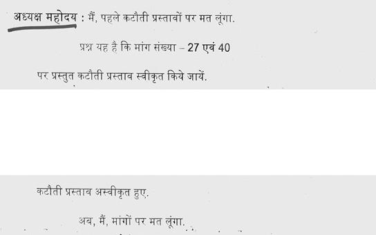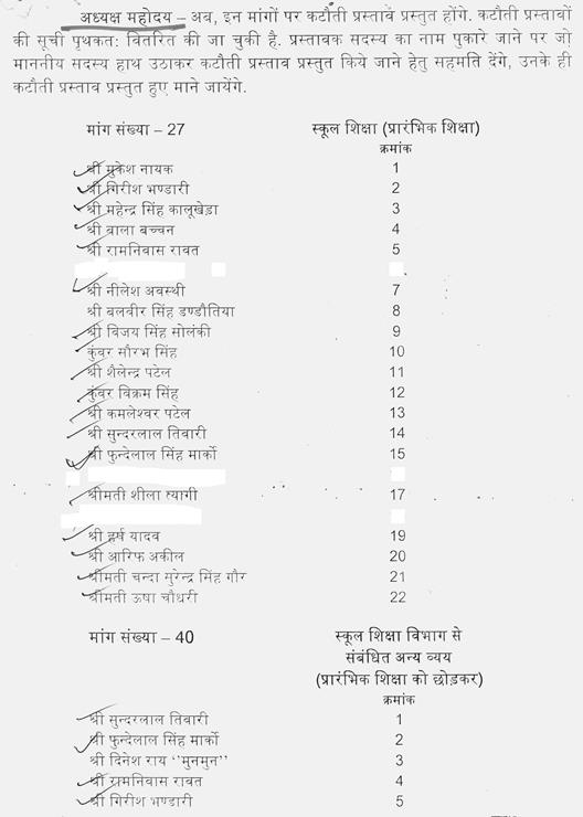 श्री गोपाल भार्गव -- मंत्री जी, यह बात सही है, लेकिन यह परंपरा और व्यवस्था का दोष है. अब कटौती प्रस्ताव आते हैं, कोई समर्थन प्रस्ताव का प्रावधान है नहीं. नहीं तो यह निश्चित रुप से यह लोग लाते समर्थन प्रस्ताव. कटौती प्रस्ताव की परंपरा है बजट के साथ.