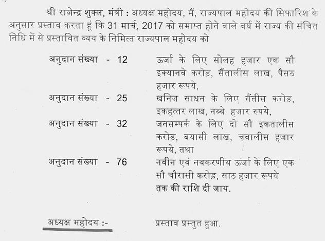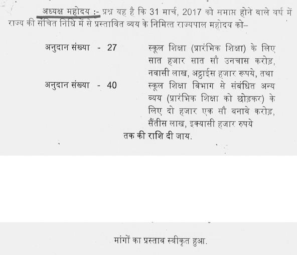 प्रश्न यह है कि 31 मार्च, 2017 को समाप्त होने वाले वर्ष में राज्य की संचित निधि में से प्रस्तावित व्यय के निमित्त राज्यपाल महोदय को --