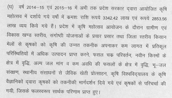 मान्यवर सभापति महोदय, इस प्रतिवेदन के दौरान मैं सदन के समक्ष कहना चाहता हूँ कि इस वर्ष 2015-16 में फ्लेट रेट, अनुसूचित जाति जनजाति के 5 हॉर्सपॉवर तक के किसानों को फ्री, एक हेक्टेयर तक के किसान को फ्री, मान्यवर मुख्यमंत्री जी प्रदेश के खजाने से सब्सिडी के रूप में कृषि के लिए, अनुसूचित जाति अनुसूचित जनजाति को सस्ती बिजली मिले और वह इसका लाभ उठा सकें, इसके लिए 7400 करोड़ रुपये की सब्सिडी अपने खजाने से जमा की है.