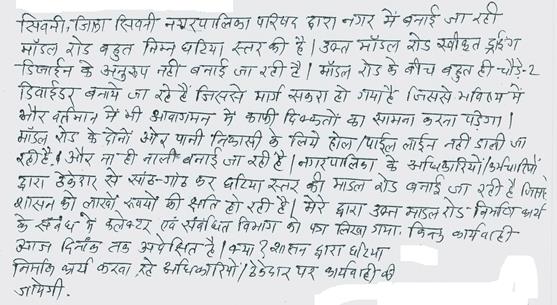 श्री शंकरलाल तिवारी—माननीय अध्यक्ष महोदय, आपके माध्यम से मेरा कहना है कि प्रदेश के पंचायत एवं ग्रामीण विकास विभाग के सचिव आदरणीय रघुवीर श्रीवास्तव जी, अतिरिक्त मुख्य कार्यपाल अधिकारी को बोलते हैं कि “इन्होंने जिला जल एवं स्वच्छता मिशन की बैठक दिनांक 31.7.2015 के कार्यवाही विवरण में कपटपूर्ण कूटरचना कर प्रचार प्रसार सामग्री के व्यय की राशि का अनुमोदन दर्ज किया गया.” इतना जिम्मेदार शासन का अधिकारी यह जानकारी लग जाने के बाद में कि यह दोषी है कूटरचना तक कहा, मैं पुन: अपनी मांग को दोहराता हूं .नंबर एक जो दोषी तत्व हैं उन्हें सतना से हटाया जाये और इन्हें निलंबित करके विभागीय जांच कराई जाये और इनको दंडित किया जाये. इसमें स्पष्ट है.