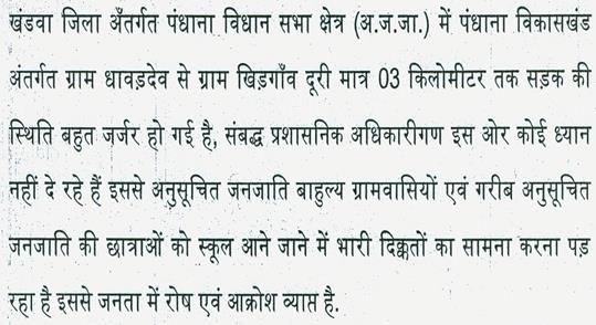 कुंवर विजय शाह—अध्यक्ष जी, जैसा माननीय सदस्या ने जानना चाहा है. कई लोग पात्रता पर्ची 2-2,3-3 जो हमने निर्णय लिया था मजदूरी में भी इन्होंने आरक्षण करा लिया है. कहीं एससी/एसटी में आ गया है. हम दिखवा लेते हैं. ऐसी कोई जानकारी मेरे पास नहीं है कि ब्लाक कर दिया गया है, फिर भी आप कह रही हैं तो हम आपकी बात पर विश्वास करते हुए दो दिन में अधिकारी भेजकर जांच करवा लेंगे, तो निराकरण हो जायेगा.