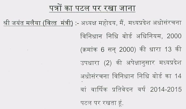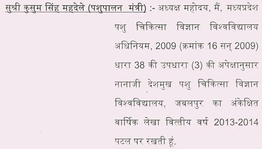 आज के इस अवसर पर जो वार्षिक प्रतिवेदन 2013-14 मध्य प्रदेश विद्युत नियामक अयोग का जो प्रस्तुत हुआ है, उस पर अपनी बात यहीं खत्म करते हुये अपनी बात को इस रूप में लेता हूं कि बेहतर होता है कि जिस विषय पर बात की जाये उस विषय पर विस्तार से और उस विषय की कमियों पर विपक्ष अपनी बात रखे, लेकिन दुर्भाग्य से दिशा भटकते हुये मात्र जब बिजली का विषय आयेगा, मंत्री जी का विषय आयेगा तब आप अपनी बात कर लें, लेकिन कमी निकालना यह बहुत दुर्भाग्यपूर्ण बात है. आज के ही दिन समाचार पत्रों में छपा है कि आज तक का रिकार्ड टूटा है सर्वाधिक रूप से जिस प्रकार से उपभोग के आधार पर विद्युत की पूर्ति विभाग द्वारा की गई है, बाकई वह काबिले तारीफ है. आपने बोलने का मौका दिया, बहुत-बहुत धन्यवाद.