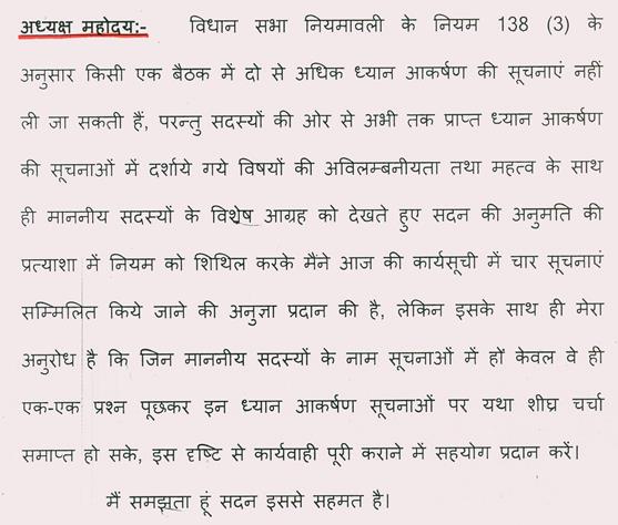 अध्यक्ष महोदय -- नहीं, आप बैठ जायें. आपके चार प्रश्न हो गये हैं. आप कृपया सहयोग करिये. आपको बहुत समय दिया है. लगभग सारी बातें स्पष्ट आ गई हैं. अब आप यदि कहें, तो मैं आगे बढ़ जाता हूं. आपके पार्टी के नेता जी भी बोलना चाह रहे हैं और रावत जी भी. विषय महत्वपूर्ण है. इसलिये उनको मैं अनुमति दे रहा हूं. रावत जी, पाइंटेड संक्षेप में प्रश्न करें.