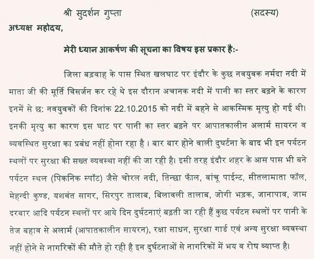 श्री गोपाल भार्गव – अध्यक्ष महोदय, मैं 7 दिन के पश्चात सदस्य को अवगत करवा दूंगा इसके बारे में.