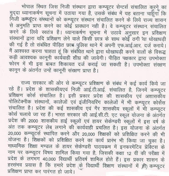 मान्यवर सभापति महोदय, मध्यप्रदेश विद्युत नियामक आयोग द्वारा उपभोक्ताओं की सेवाओं की भी चिंता की जाती है उनको ध्यान में रखा जाता है अगर उनकी कोई शिकायतें हैं क्योंकि यह बहुत बड़ा काम है और इसमें शिकायतें आना और उनका निराकरण होना भी अत्यावश्यक है तो शिकायतों के निराकरण के लिए तीनों वितरण कंपनियों के मुख्यालयों में शिकायत निवारण फोरम स्थापित किया है. जबलपुर इंदौर और भोपाल में उपभोक्ता शिकायत निवारण फोरम काम कर रहे हैं. इ सी वर्ष 2013-14 में 252 शिकायतें उपभोक्ता शिकायत निवारण फोरम को प्राप्त हुई थीं, जैसा कि कहा गया कि उपभोक्ताओं की कोई चिंता नहीं होती है,उपभोक्ताओं के लिए नियामक आयोग कुछ नहीं करता है, विरोधी दल को यह भाषण अच्छा लगता है. मैंने तो शुरू में ही कहा था कि वेद पढ़ें लभेद मत पढ़ो.