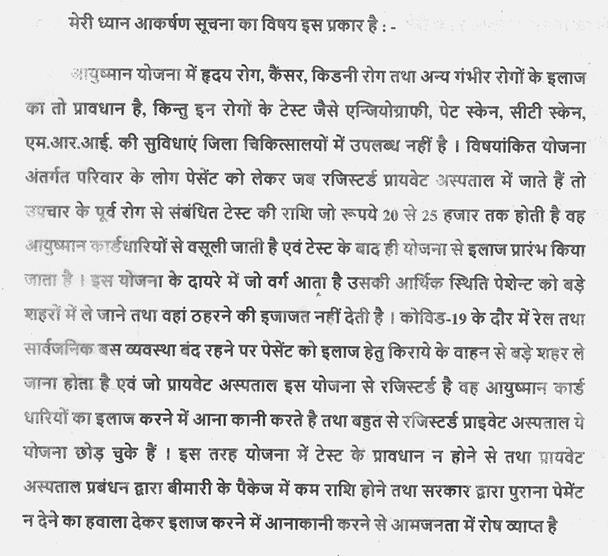 पराई नदी पर परेवा बांध स्वीकृत हुआ था, लेकिन बीच में हम कुछ समय के लिए नहीं आ पाये. स्वीकृत काम जो हमारे कांग्रेस के मित्र थे, उनका नाम हम नहीं लेना चाहते, उन्होंने काम निरस्त करा दिया था. पराई नदी पर परेवा बांध बनने का काम जो प्रशासनिक स्वीकृति पहले जारी हुई थी, उसके आधार पर कार्य प्रारंभ किया जाय. सुखनई, सपरार और उर नदी का भी सर्वे करवाकर हमारे विधान सभा क्षेत्र में पानी देने का काम किया जाय.