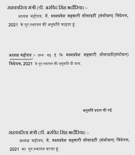 संसदीय कार्य मंत्री(डॉ.नरोत्तम मिश्र)-- माननीय अध्यक्ष जी, दो विषय थे, एक तो मेरी बहन साधौ को कोरोना हो गया है, हाउस के चार और विधायकों को कोरोना हो गया है. आप हमारे पालक हैं, मेरा निवेदन था कि जैसे आज सज्जन भैय्या नहीं हैं या और विधायकों के बगल में जो विधायक बैठे थे, (माननीय सदस्य श्री के.पी.सिंह जी द्वारा बैठे बैठे कुछ कहने पर) मैं आने का मना नहीं कर रहा, आप तो पहलवान हों, आपको तो यह बात समझ में आएगी नहीं, तो अध्यक्ष जी, इनके बगल में भी, जैसे बहन के बगल में सज्जन भाई बैठते थे, देवेन्द्र के बगल में और विधायक बैठते थे, एक बार इनके स्वास्थ्य के परीक्षण के संबंध में अध्यक्ष जी, थोड़ा आप विशेष देख लें चूँकि जिस तरह से कोरोना का बैक आ रहा है, उससे हम सबकी जिम्मेदारी बढ़ जाती है.
