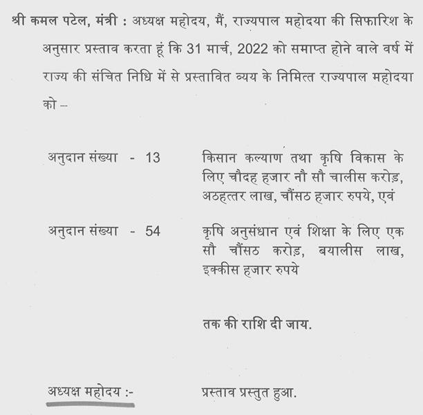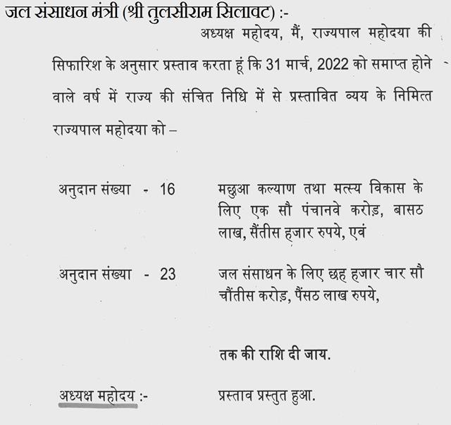 वर्ष 2021-22 के आय-व्ययक में विभागवार चर्चा में भाग लेने विषयक