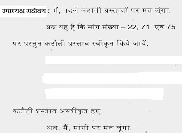 अध्यक्ष महोदय - मैं पहले कटौती प्रस्तावों पर मत लूँगा. मांग संख्या 8, 9, 35 एवं 58 पर प्रस्तुत कटौती प्रस्ताव स्वीकृत किये जायें.