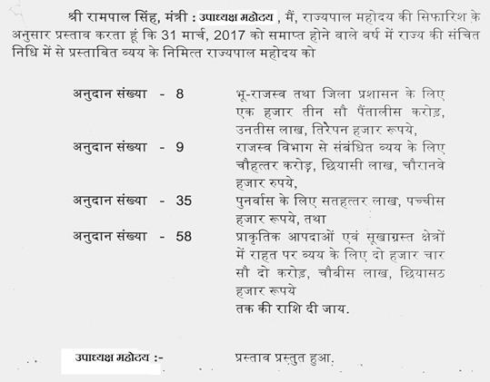 वर्ष 2016-17 की अनुदान की मांगों पर मतदान (क्रमश:)