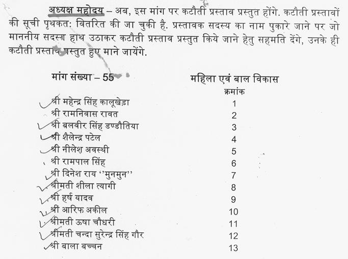 उपस्थित सदस्यों के कटौती प्रस्ताव प्रस्तुत हुए. अब मांग और कटौती प्रस्तावों पर एक साथ चर्चा होगी. सुश्री हिना कावरे.