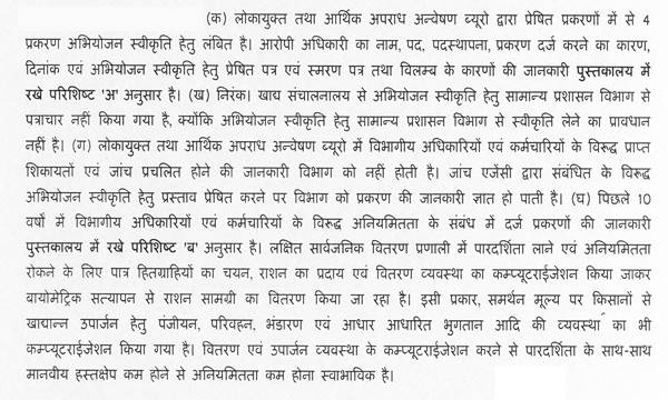 श्री बिसाहूलाल सिंह - अध्यक्ष महोदय, उचित मूल्य की दुकान चरईश्यामपुर, कम मात्रा में वितरण, अधिक कीमत लेना, केरोसिन प्रदाय नहीं करना, अनाज का वितरण न करना, एक तो यह पाया गया. इसमें समिति के प्रबंधक द्वारा शिकायत पर जांच की एवं विक्रेता के विरुद्ध एफआईआर दर्ज की गई और उस दुकान का निलंबन किया गया. दूसरा है, बनियातौर इसमें भी वर्ष 2022 में पीएमजीवाय एवं पीडीएस दोनों योजनाओं में राशन सामग्री बांटी नहीं गई और 7-8 दिन पहले फिंगर प्रिंट लगवा देना, 132 क्विंटल गेहूं, 31 क्विंटल चावल, 6 क्विंटल नमक, 6 क्विंटल शक्कर कम पाया गया. इसमें भी एफआईआर की गई और दुकानदार को कारण बताओ नोटिस जारी किया गया था. इसी ढंग से मस्तुरा में मार्च, 2022 में दोनों योजनाओं की राशन सामग्री बांटी नहीं गई.