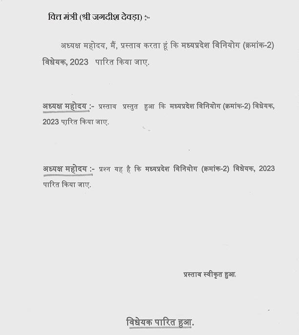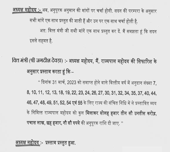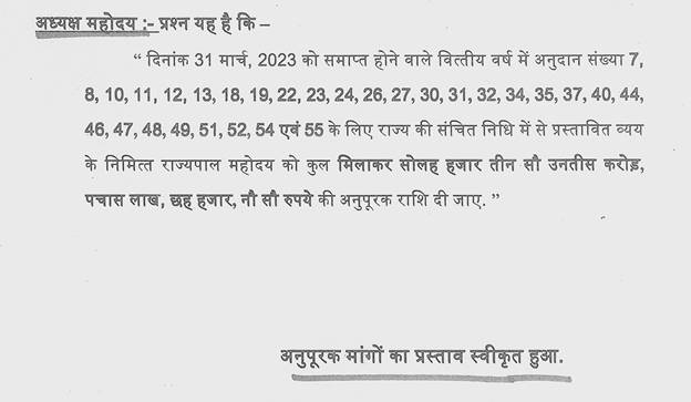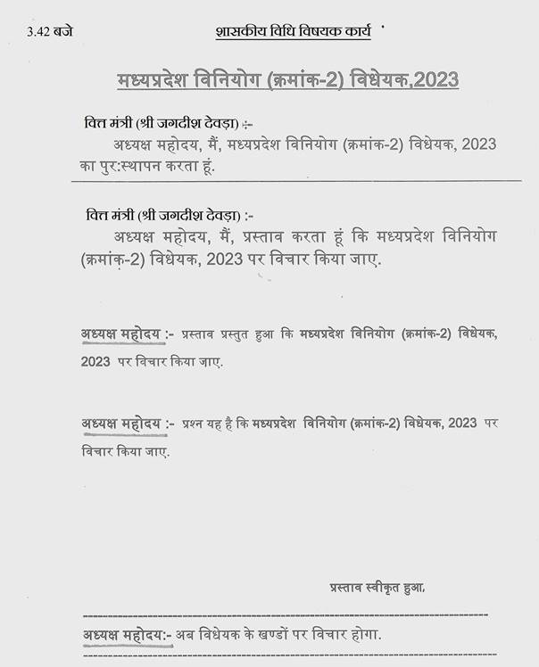 अपराह्न 5.30 बजे विधान सभा की कार्यवाही शुक्रवार, दिनांक 17 मार्च 2023 (फाल्गुन 26, शक संवत 1944) के पूर्वाह्न 11.00 बजे तक के लिये स्थगित की गई.
